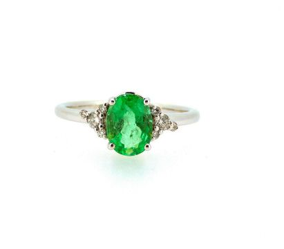 Certified 1.58 Ct. Natural High Quality Emerald and Diamonds 18K White Gold Ring