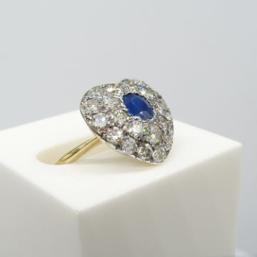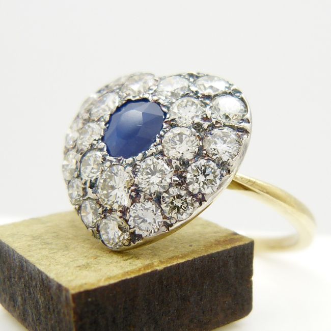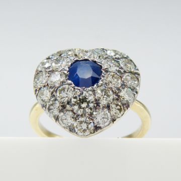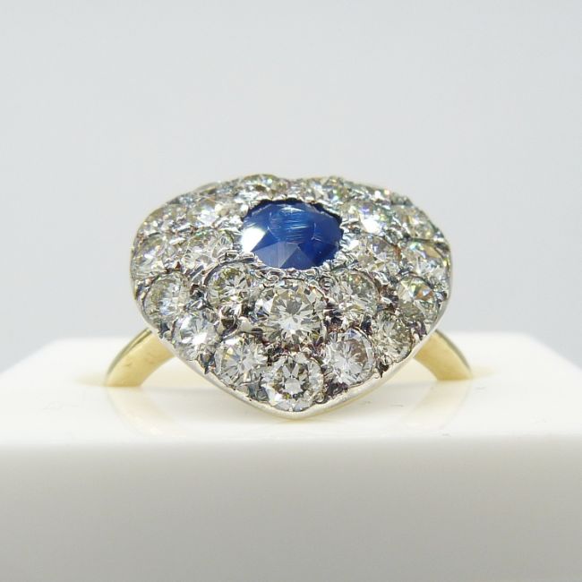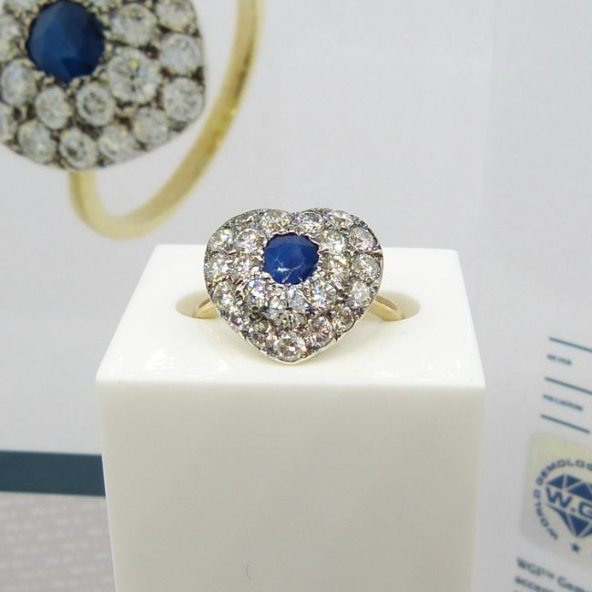 A hand-made, certificated, sapphire and diamond cluster heart-shaped ring in 18ct yellow gold