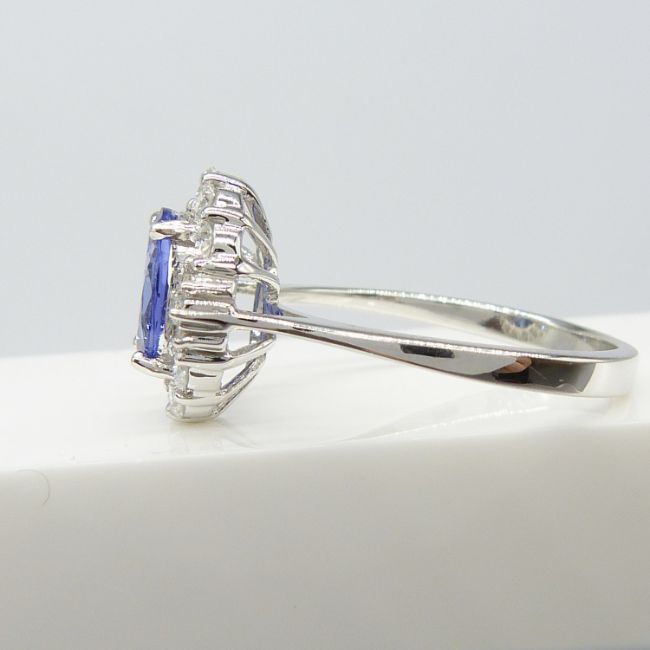 A stylish 18ct white gold tanzanite and diamond cluster ring
