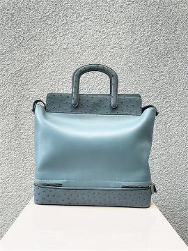 CARTIER Half Zippy and Ostrich Bleu Shopping Handbag