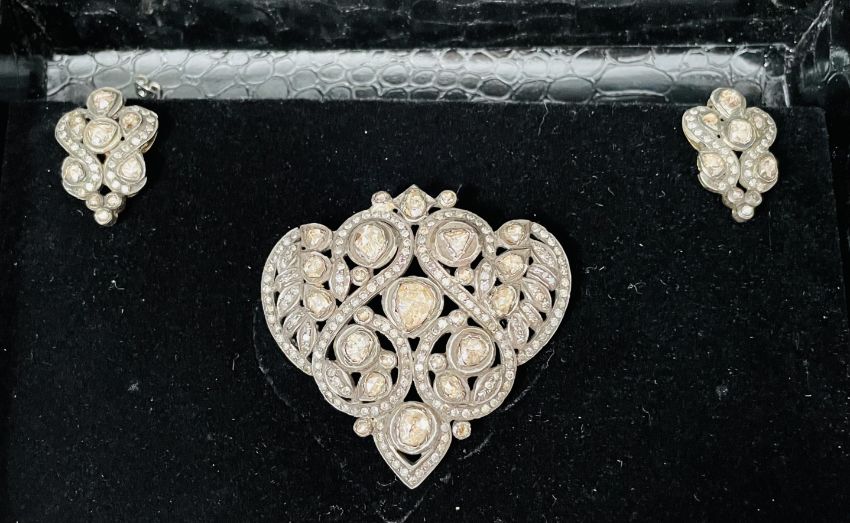 Beautiful 1920 Vintage Pendant And Earrings Set With 10ct Natural Diamonds