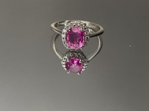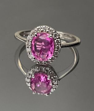 Beautiful Natural Ceylon Pink Sapphire With Natural Diamonds & 18k White Gold.