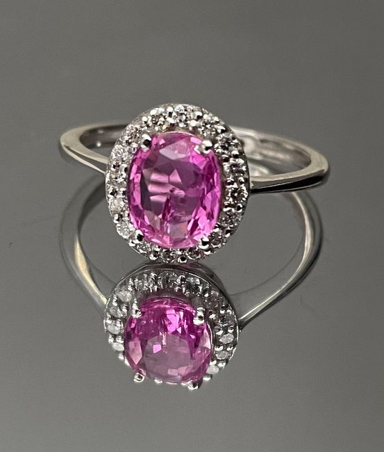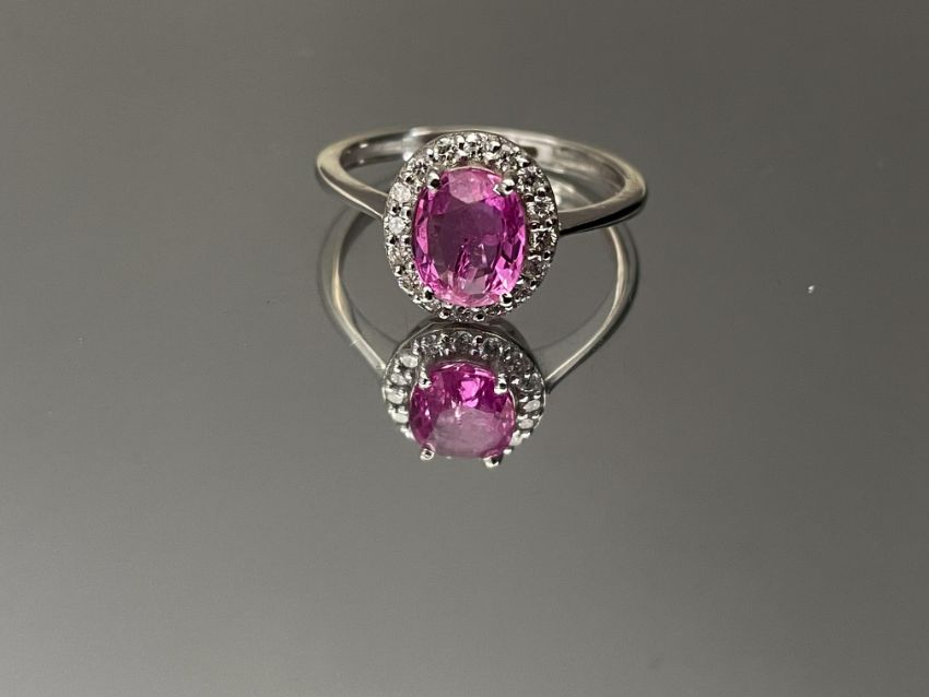 Beautiful Natural Ceylon Pink Sapphire With Natural Diamonds & 18k White Gold