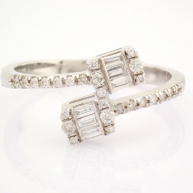 IDL Certificated 14K White Gold Baguette Diamond & Diamond Ring (Total 0.2 Ct. Stone)