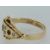 - 9ct yellow gold (375) ring three (3) Garnets and six (6) Diamonds - Hallmarked: 9ct Gold - Ring Weight: 2.3g - Ring Width (approx.): 9mm at front / 2.6mm on shank - Ring Size: H - Condition: Good condition - Sizeable: Yes - Supplied in a ring box