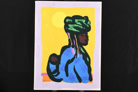 5449 - Original painting by Gerry Baptist titled "Mother and Child" Note: supplied with a replacement valuation for 2400 along with biographical details on the artist (free of charge) Artist Biography: Gerry Baptist's paintings convey an immediate frisson; he creates landscape and figure studies in vibrant colour possessing a natural talent for composition.