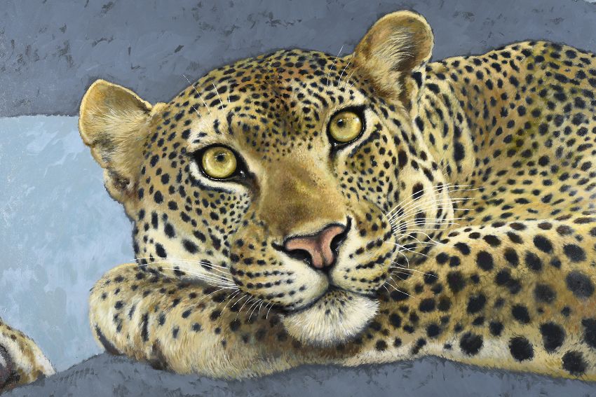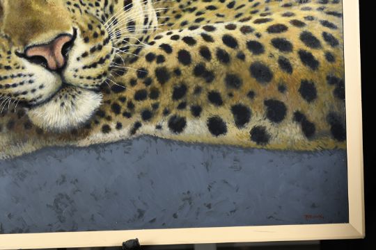 4364 - This must be one of the finest original works of art painted by the much loved, late English wildlife artist, Joel Kirk (1948-2020) This image of a Leopard in a tree has been painted on panel.