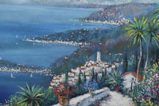 1848 - This delightful original pastel painting by Perot (AKA Joel Kirk 1948-2020) is of the South Coast of France.