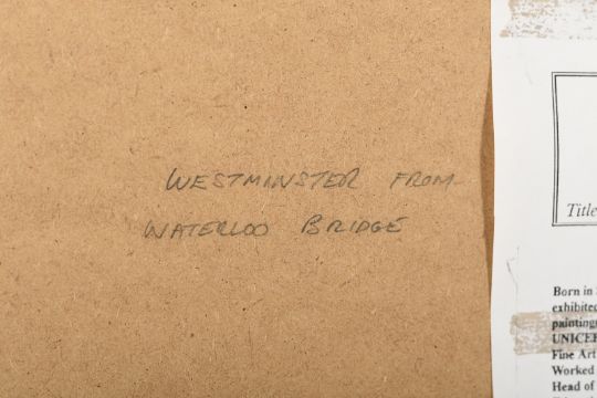 7303 - Original oil on canvas by Ivan Taylor "Westminster Bridge" showing the view of Westminster from Waterloo Bridge.