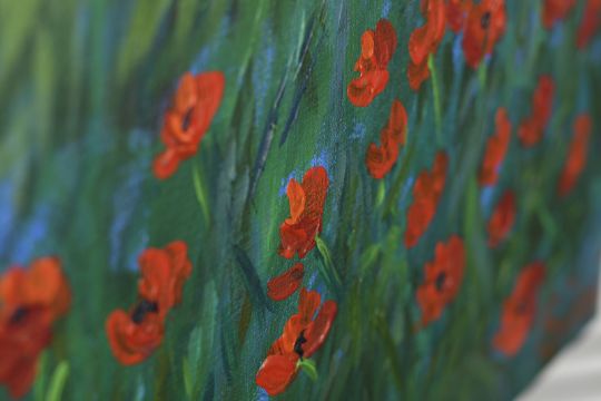 This is a very rare painting in this style by the late English wildlife artist, Joel Kirk (1948-2020). Joel painted very few paintings under the nom de plume 'Simi'. This is a delightful poppy scene, on stretcher bars and ready to frame.