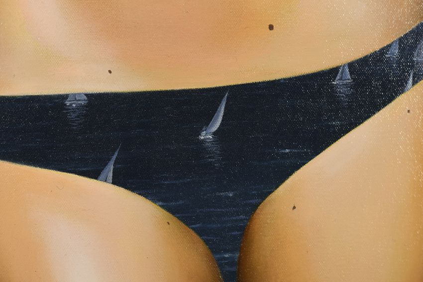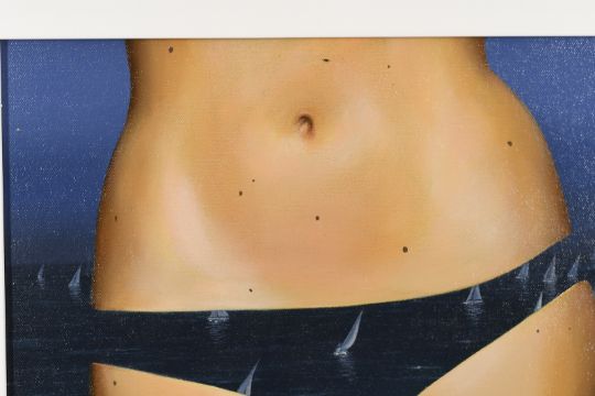 This original oil is titled "Uninterrupted View". Gordon Mitchell was born in 1952 and studied at Edinburgh College of Art. He embarked on a career in teaching until becoming a full-time painter in 1989.A prolific painter, Mitchell describes himself as an abstract expressionist’. Often labelled a surrealist, though he thinks not, he certainly wants his work to be thought-provoking.