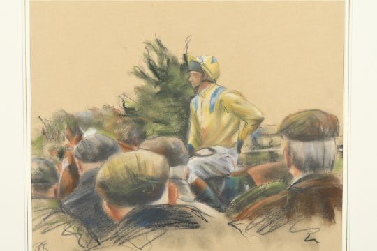 5440 - Original pastel painting by the renowned equestrian artist Alan Brassington "Picking a Winner at NAAS" Note: supplied with a replacement valuation for 2200 along with biographical details on the artist (free of charge). H: 61cm W: 68cm D: 4cm