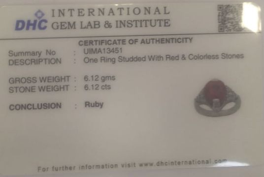 Title: Beautiful 6.12ct Natural Burmese Ruby Ring With Diamonds And 18k White Gold