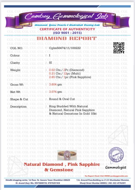 Title: Beautiful Natural Ceylon Pink Sapphire With Natural Diamonds & 18k White Gold