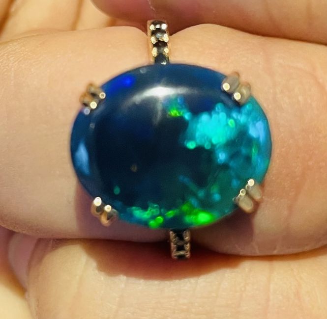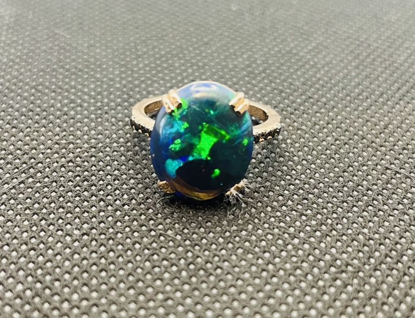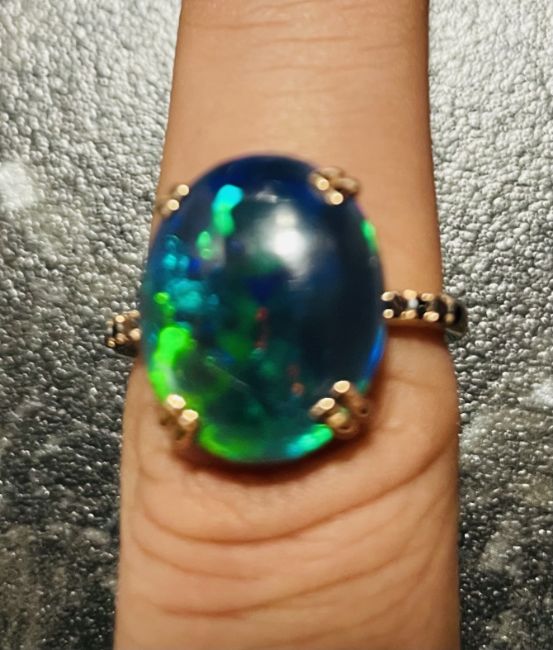 Beautiful Natural Black Opal Ring, 18k Gold.