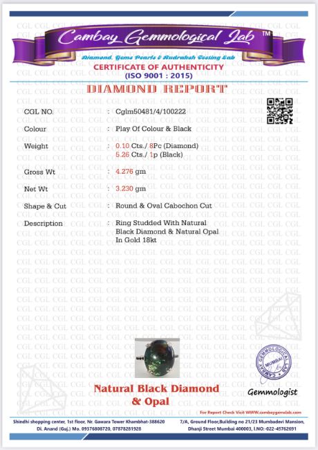 Title: Beautiful Natural Black Opal Ring With Natural Black Diamond And 18k Gold