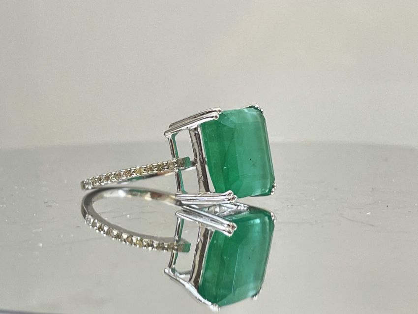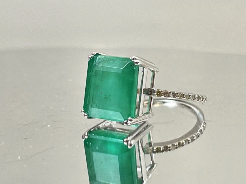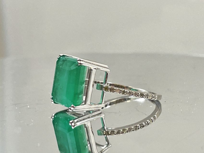 Title: Beautiful 7.19CT Natural Emerald With Natural Diamonds & 18k White Gold