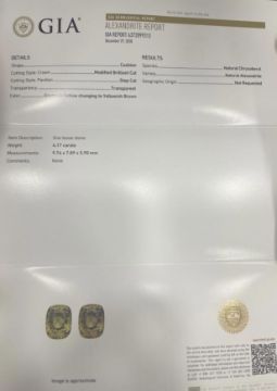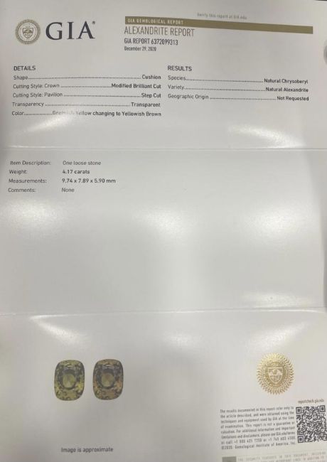 4.17CTs.Natural alexandrite chrysoberyl GIA full report certified Colour: yellow green changing to Brown yellow Weight: 4.17CTs.