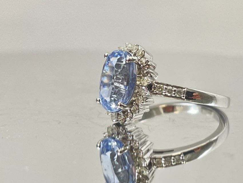 Beautiful 3.13 CT Natural Ceylon Blue Sapphire With Natural Diamonds & 18k White Gold. Dispatched with Royal Mail Signed For® 1st Class Letter.