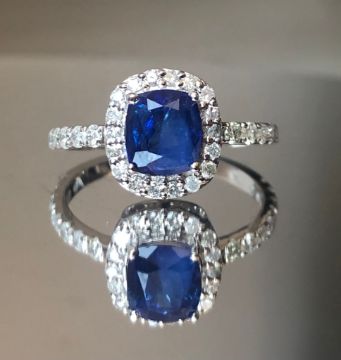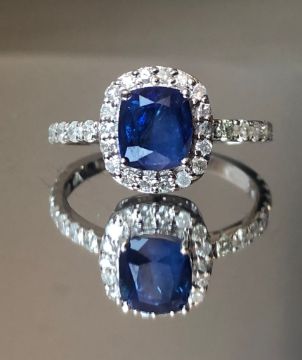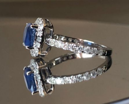Beautiful 1.48 CT Natural Ceylon Royal Blue Sapphire With Natural Diamonds & 18k White Gold.