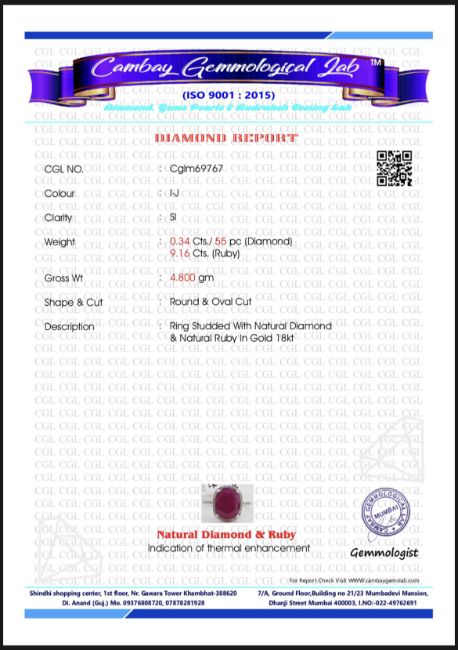 Title: Natural Burma Ruby 9.16 Ct With Natural Diamonds & 18kGold