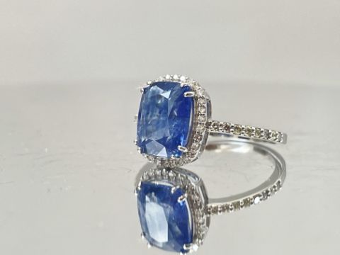 Beautiful 3.23 ct Natural Ceylon Blue Sapphire With Natural Diamonds & 18k White Gold. Dispatched with Royal Mail Signed For® 1st Class Letter.