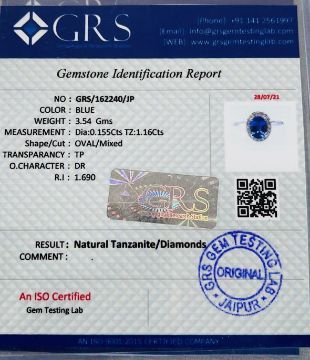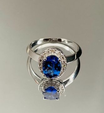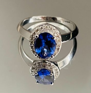 1.16 CTS. Natural Tanzanite Colour: blue Weight: 1.32 carats Diamond- 0.155 carats Cutting style: Brilliant modified cut Shape: oval Clarity: VVS, transparent Ring Size: N