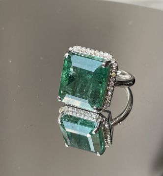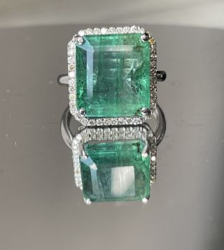 Title: IGI Cert 8.77CT Natural Emerald Ring Natural Diamonds & 18k Gold