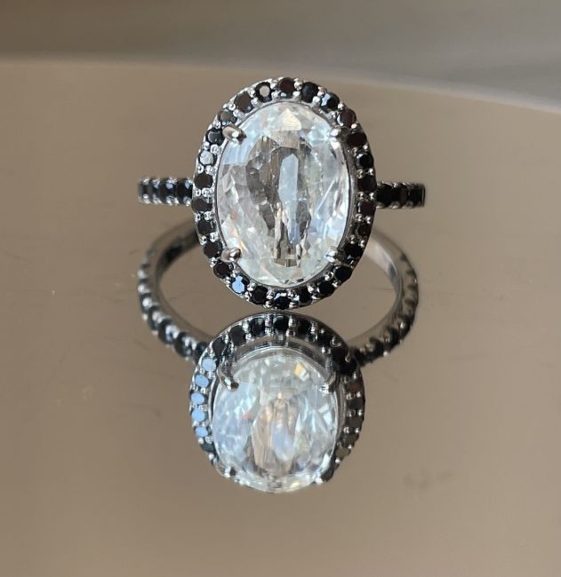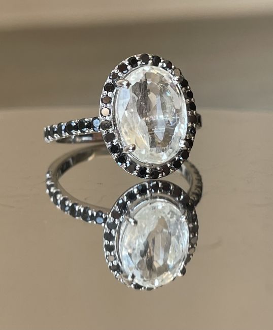 Beautiful 4.34 CT Natural Ceylon White Sapphire With Natural Diamonds & 18k White Gold.
