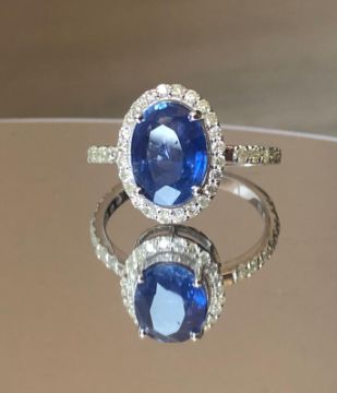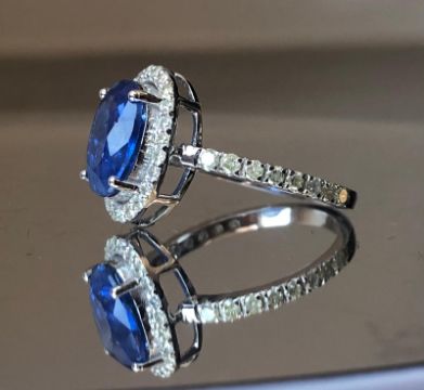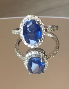 Beautiful 3.30 CT Natural Ceylon Royal Blue Sapphire With Natural Diamonds & 18k White Gold.