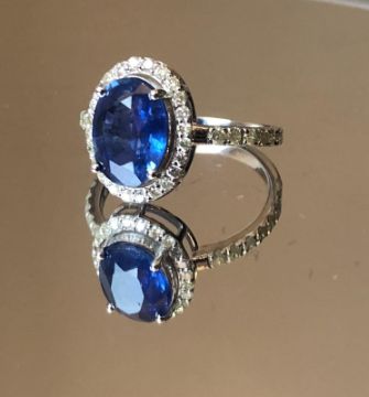 Title: Beautiful Natural Ceylon Royal Blue Sapphire W Natural Diamonds & 18kGold
