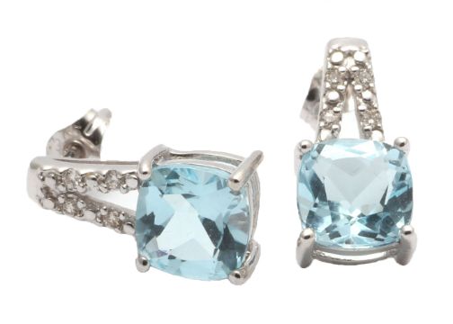 Title: 9ct White Gold Diamond And Blue Topaz Earring 0.05