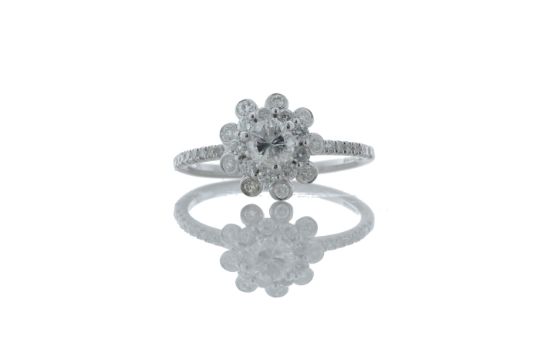 Title: 18ct White Gold Flower Halo Diamond Ring 0.76