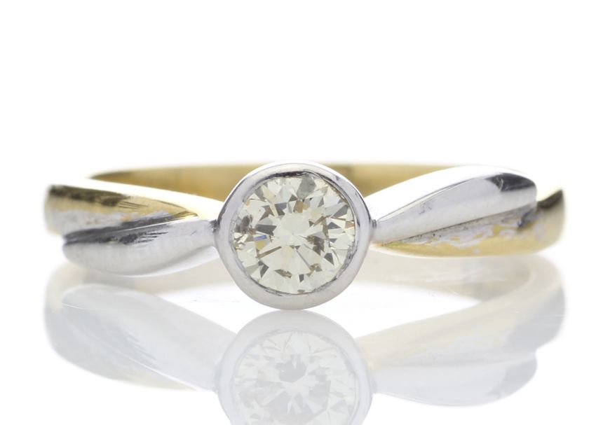 Title: 18ct Single Stone Fancy Rub Over Set Diamond Ring 0.45
