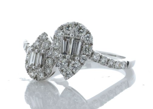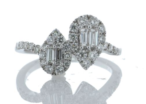 Title: 18ct White Gold Double Pear Shape Cluster Diamond Ring 0.83