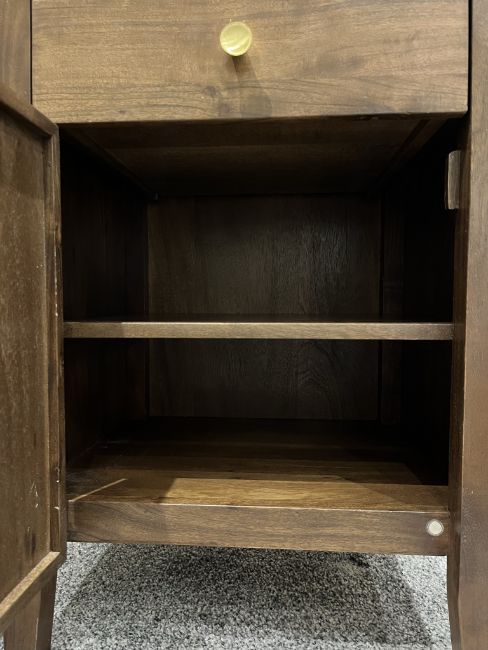 John Lewis Padma 1 Door Parquet Bedside Table, Brown/Brass - New & No Damage