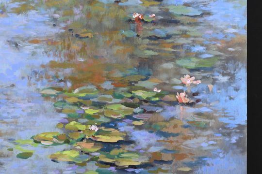 Description: 5223 - Original oil on panel by the English artist Lesley Roberts (AKA Joel Kirk 1948-2020) This was the artists pseudonym he used for this type of subject matter. Titled ""Peaceful Water"" and painted in the impressionist style. Ready to frame. It will be supplied with insurance replacement valuation for £1500 (Free of charge). H: 60cm W: 92cm D: 1cm Condition: NewLocation: ECategory: Art