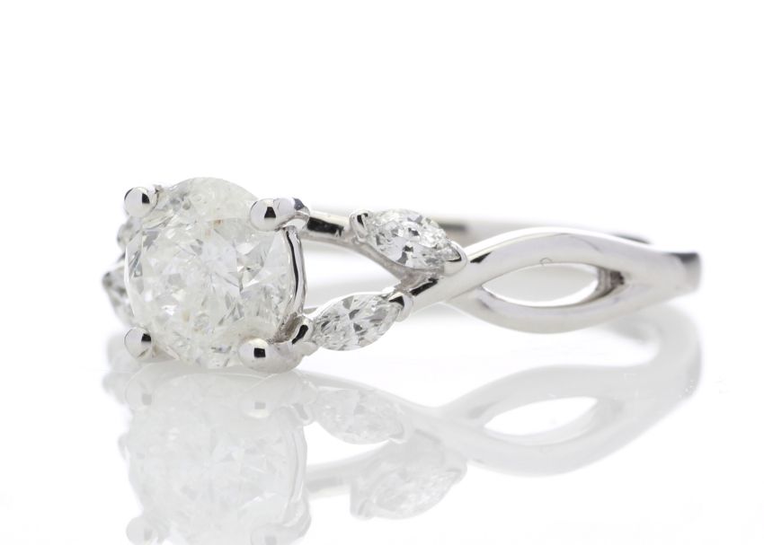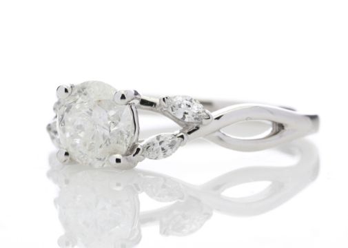 A beautiful white collection colour 0.91 carat diamond sits between four marquise shaped diamonds to create a leaf shape illusion on this gorgeous twist shank engagement ring with a total diamond weight of 1.07 carats. This enchanting ring is a fabulous accessory for every occasion and also makes the perfect gift.Item Specification. .Carat:1.07.Colour:D. Clarity:SI. Cut:ExcellentMetal: 18ct White Gold.Ring Size: M (This ring can be re-sized by the vendor prior to shipping if necessary).. Condition: Boxed - Unworn - from Manufacturer. Certificate: GIE. Certificate Number: 420219355. Certificate Link: https://reportcheck.gielab.com/viewpdfreport.php?id=420219355. SC:3106013"