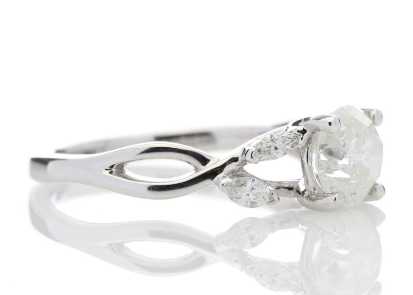 Title: 18ct White Gold Single Stone Diamond Ring With Leaf Shoulders (0.91) 1.07