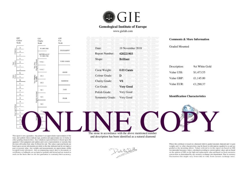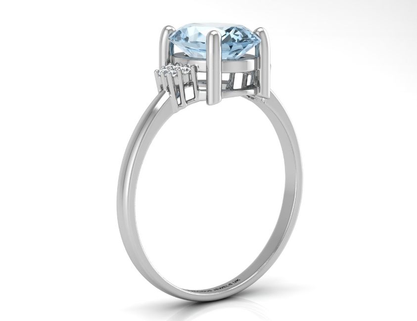 An oval cut Blue Topaz 1.89 carats sits between ten single cut diamonds in this gorgeous 9ct white gold ring. This is a classic ring which will add an elegant touch to any outfit.Item Specification. .Carat:0.03.Colour:D. Clarity:VS. Cut:Very GoodMetal: 9ct White Gold.Ring Size: M (This ring can be re-sized by the vendor prior to shipping if necessary).. Condition: Boxed - Unworn - from Manufacturer. Certificate: GIE. Certificate Number: 420221903. Certificate Link: https://reportcheck.gielab.com/viewpdfreport.php?id=420221903. SC:8180055L"