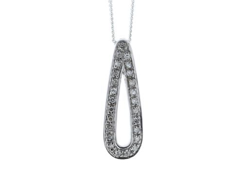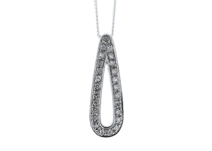 Title: 9ct White Gold Fancy Cluster Teardrop Shape Diamond Pendant 0.12