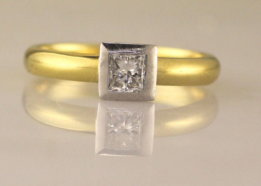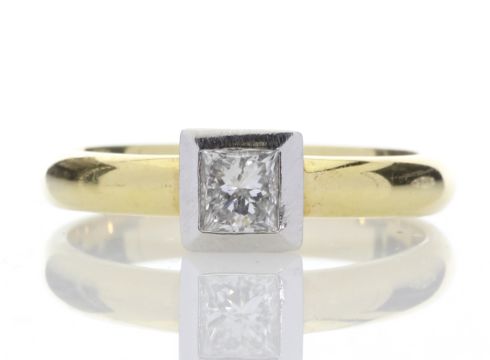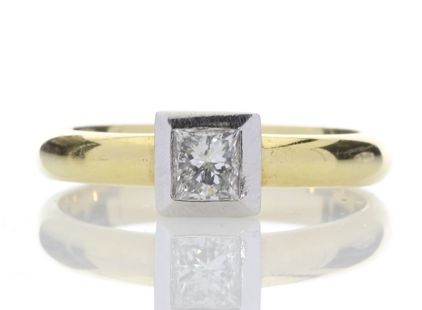 Title: 18ct Single Stone Princess Cut Rub Over Diamond Ring 0.45
