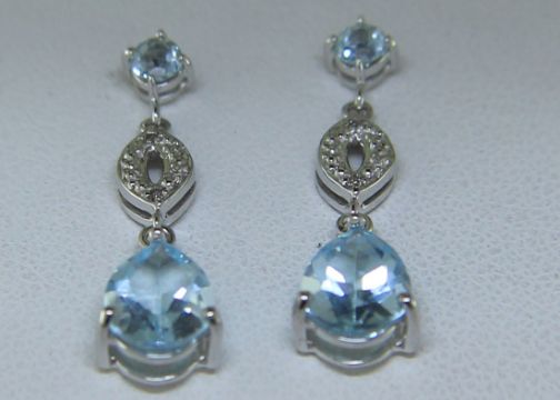 Title: 9ct White Gold Diamond And Blue Topaz Earring 0.02