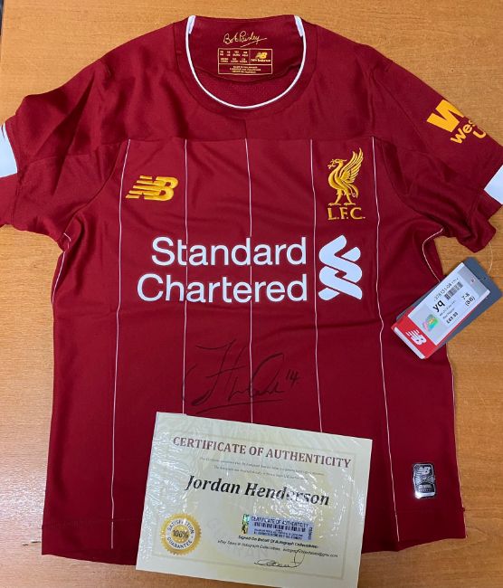 Liverpool Jordan Henderson Signed Football Shirt Age 7/8 Years Old With COA.