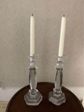 Pair of Victorian heavy crystal candlesticks. 24cm high. Perfect condition. Supremely elegant for table or mantle. In my family for 90 years.
