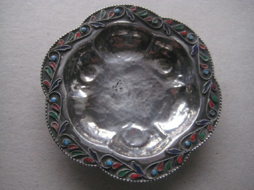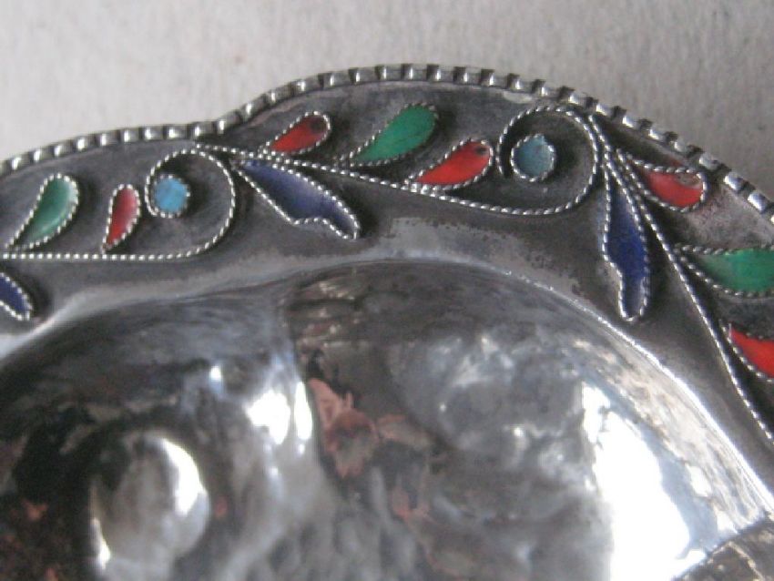 Title: Sterling Silver And Enamel Decorated Sweet Dish