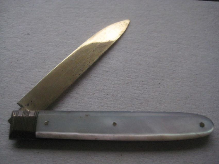 Title: Rare George III Mother Of Pearl Hafted Silver-Gilt Bladed Folding Fruit Knife