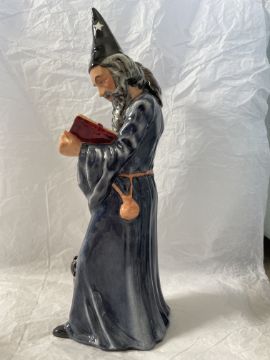 This lovely Late 20th Century Royal Doulton Porcelain Figurine, ÒThe WizardÓ HN 2877, was designed by leading Doulton artist Alan Maslankowski, and issued in this blue colourway from 1979 to 2006. The underside fully marked in green with the Royal Doulton backstamp, THE WIZARD HN 2877, © ROYAL DOULTON TABLEWARE LTD 1978, plus in black script, the PainterÕs Monogram, possibly SM, unidentified, or if GM, perhaps Graham Mason.