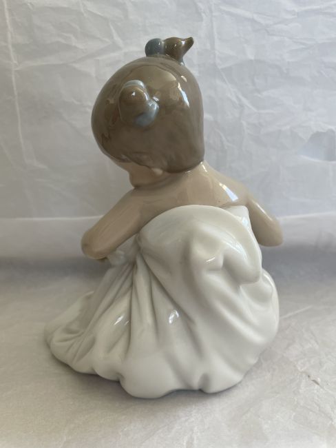 This is a beautiful figurine of a Toddler wrapped in her blanket with a dummy.