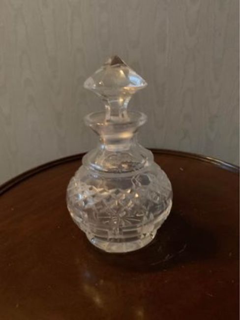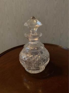 Exquisite Victorian cut crystal scent flacon. 6" high 3" belly. Excellent condition. Supremely elegant, useable collector's piece.